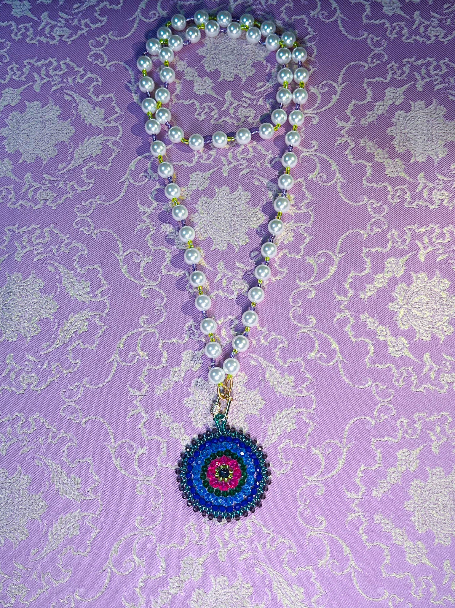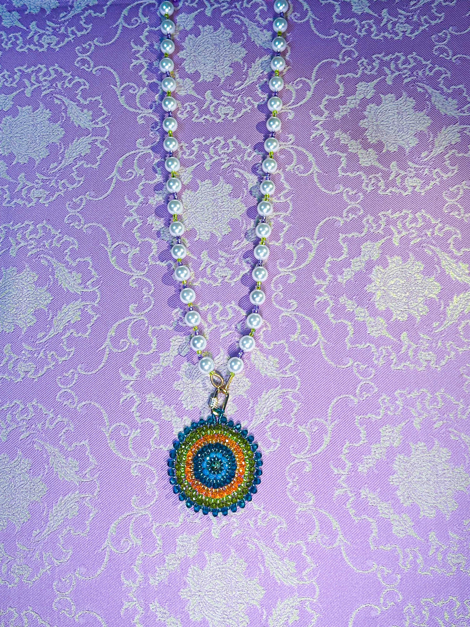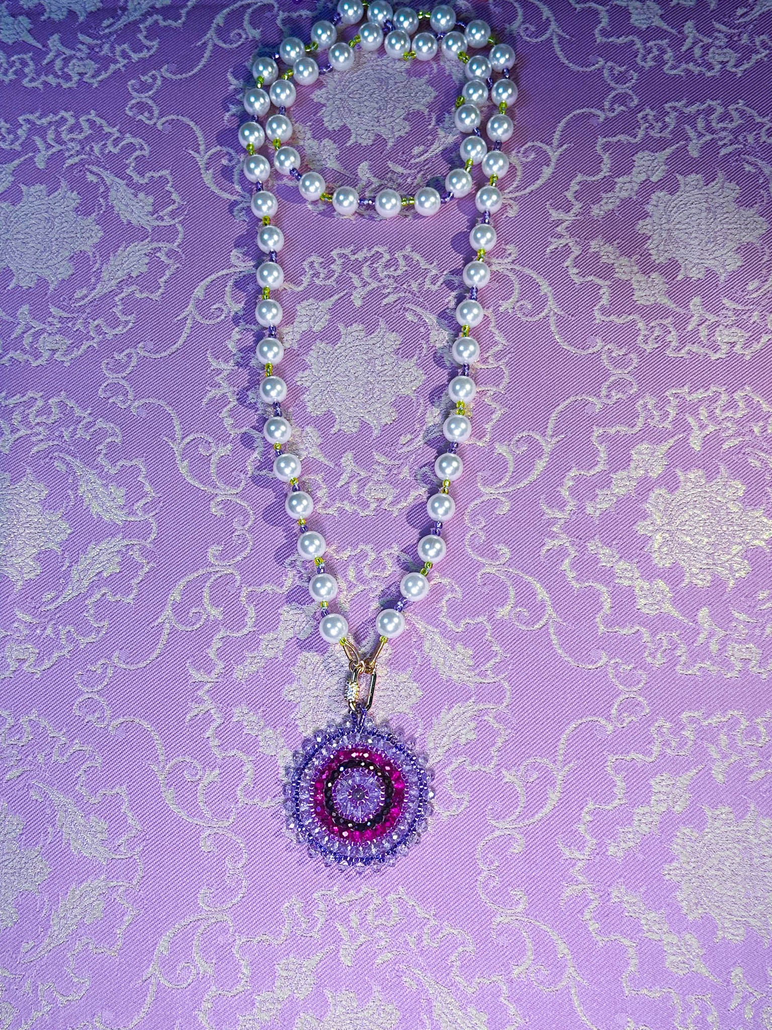 The Oolong Pearl necklaces are part of our Oolong Tea Time Drop. Portraying Kwan Yin, the goddess, in her princess era, in her most opulent form. Making all these eye candy jewels the boldest, most opulent collection yet. Full of meaningful colors, gold beads, pearls, shiny crystals, & and the most wonderful loving and healing energies.