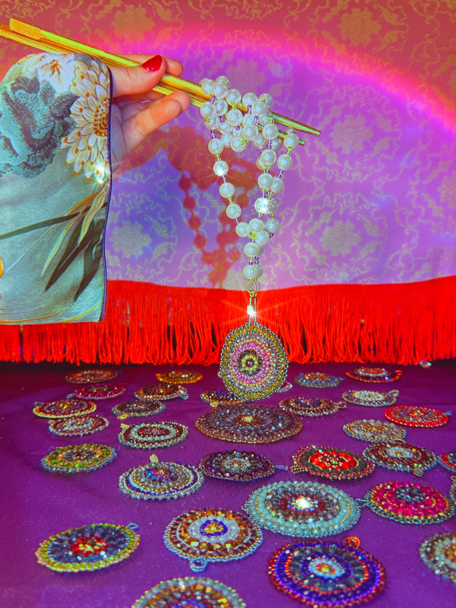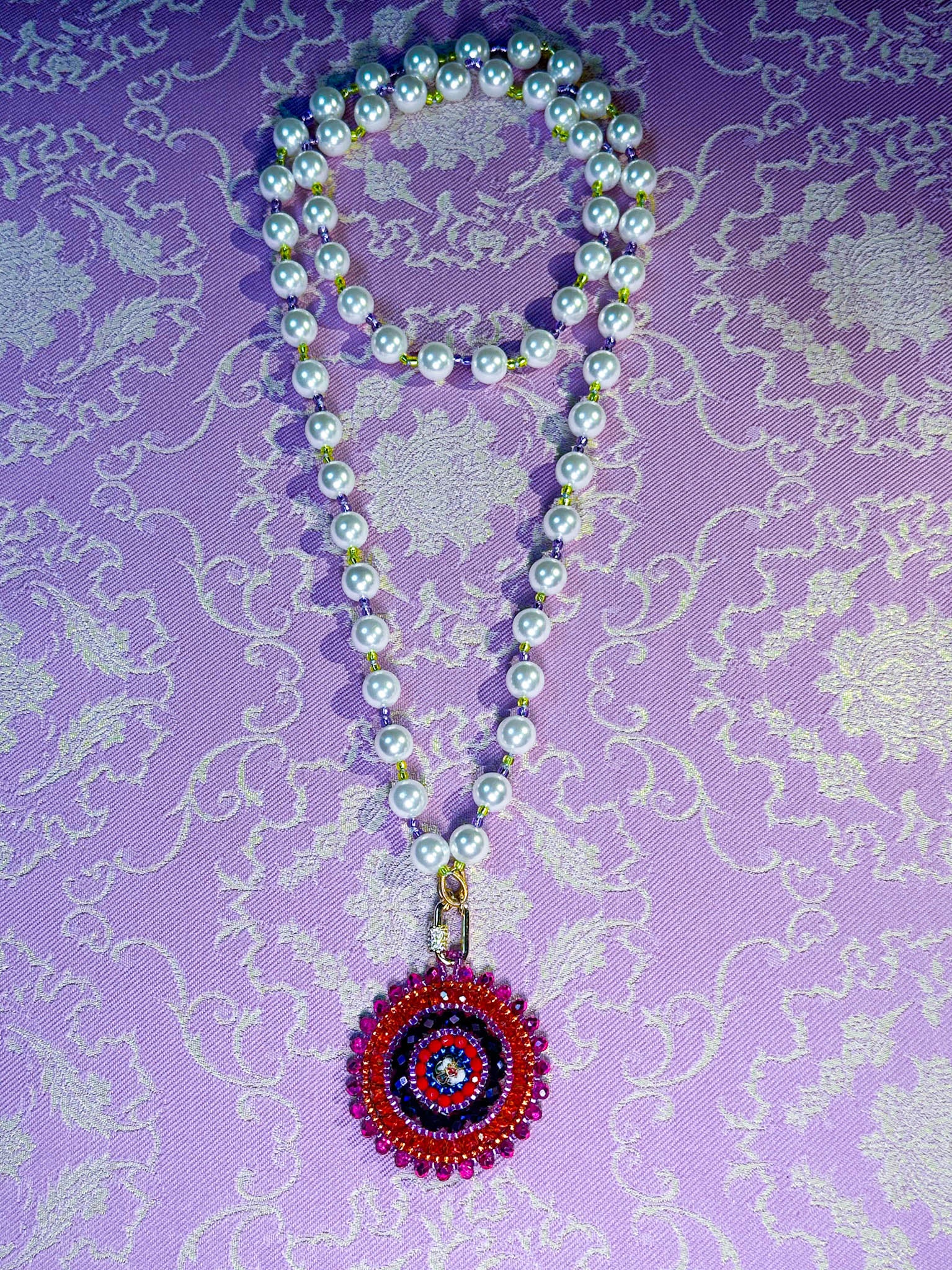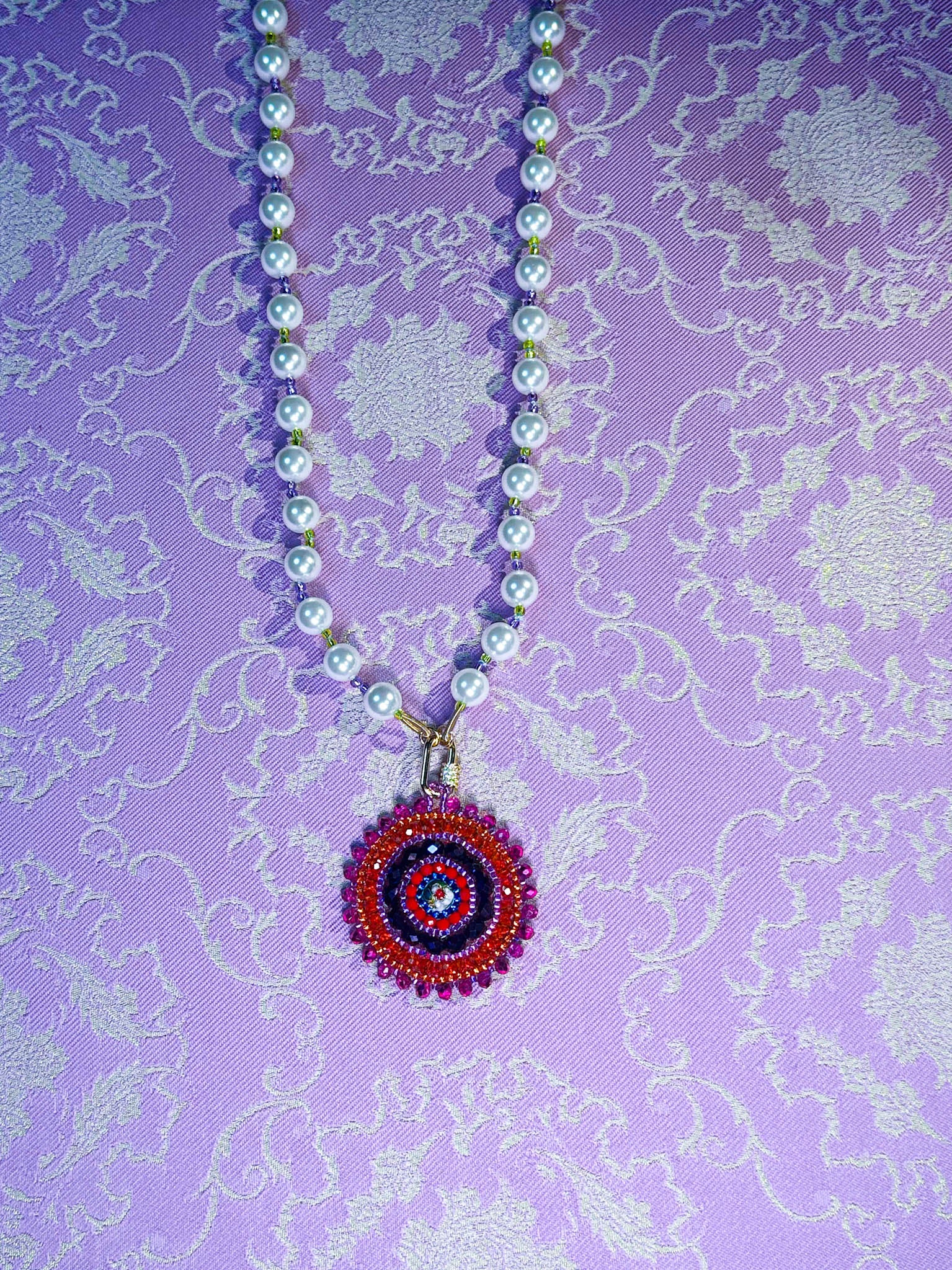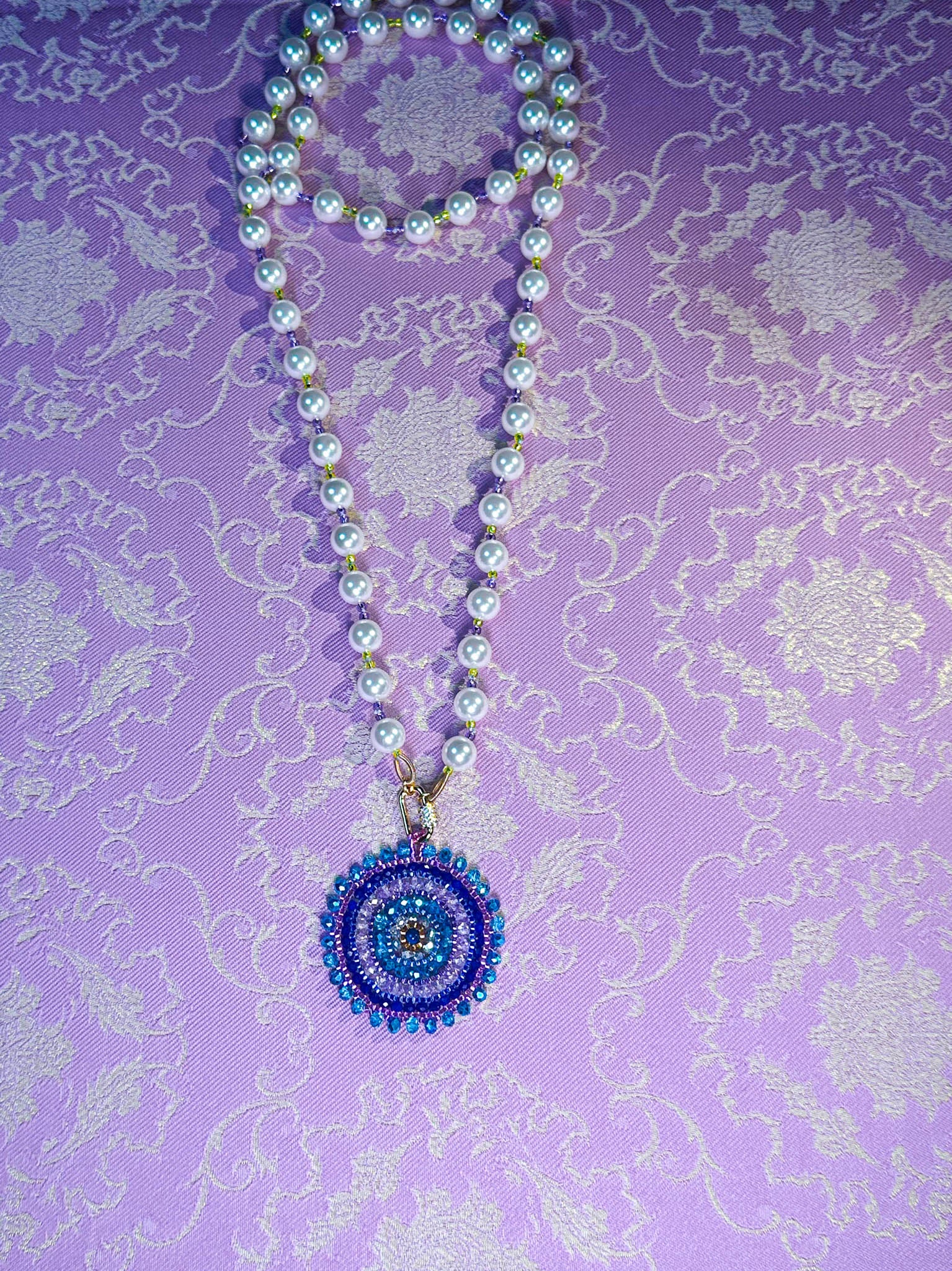 The Oolong Pearl necklaces are part of our Oolong Tea Time Drop. Portraying Kwan Yin, the goddess, in her princess era, in her most opulent form. Making all these eye candy jewels the boldest, most opulent collection yet. Full of meaningful colors, gold beads, pearls, shiny crystals, & and the most wonderful loving and healing energies.