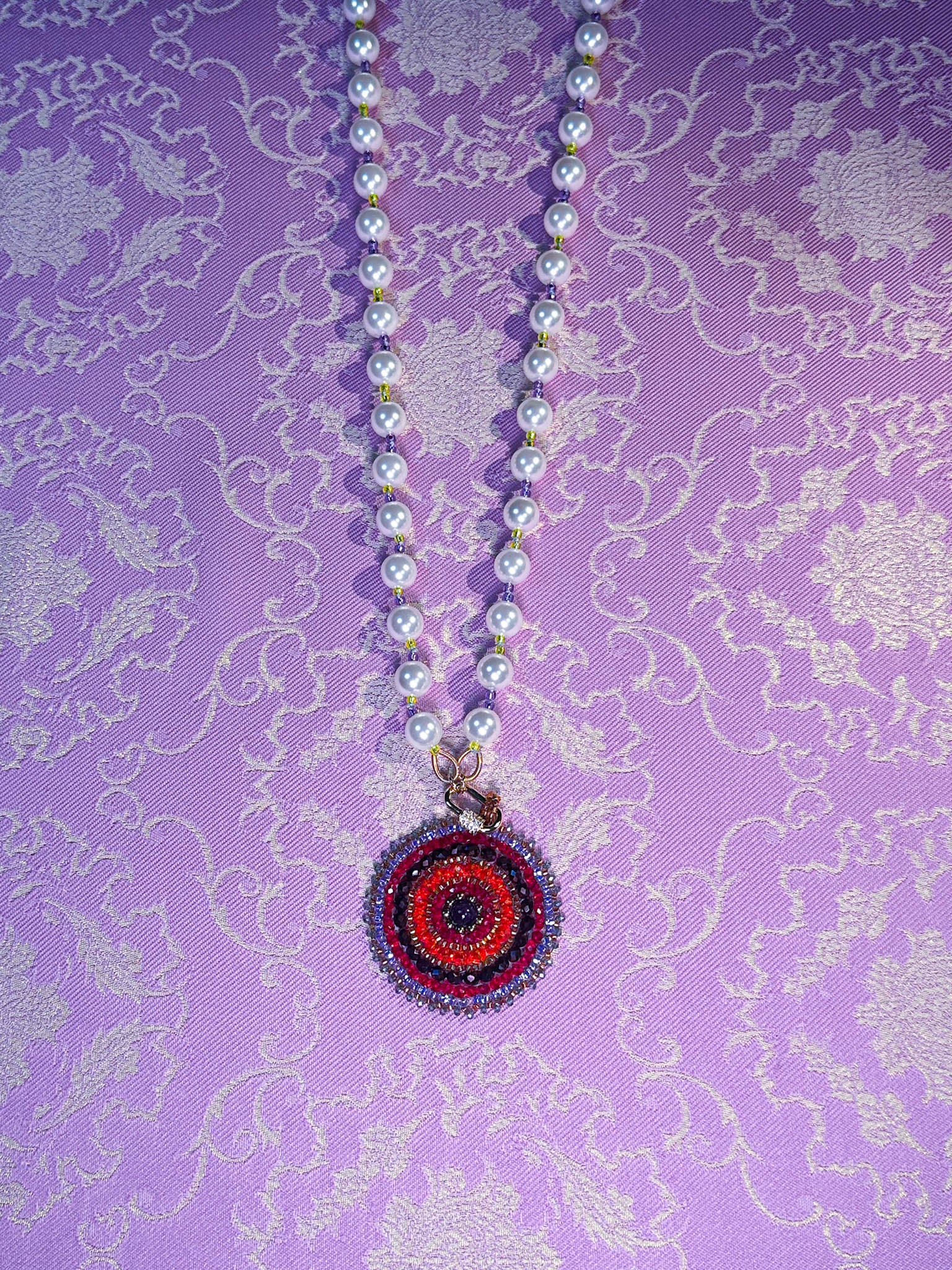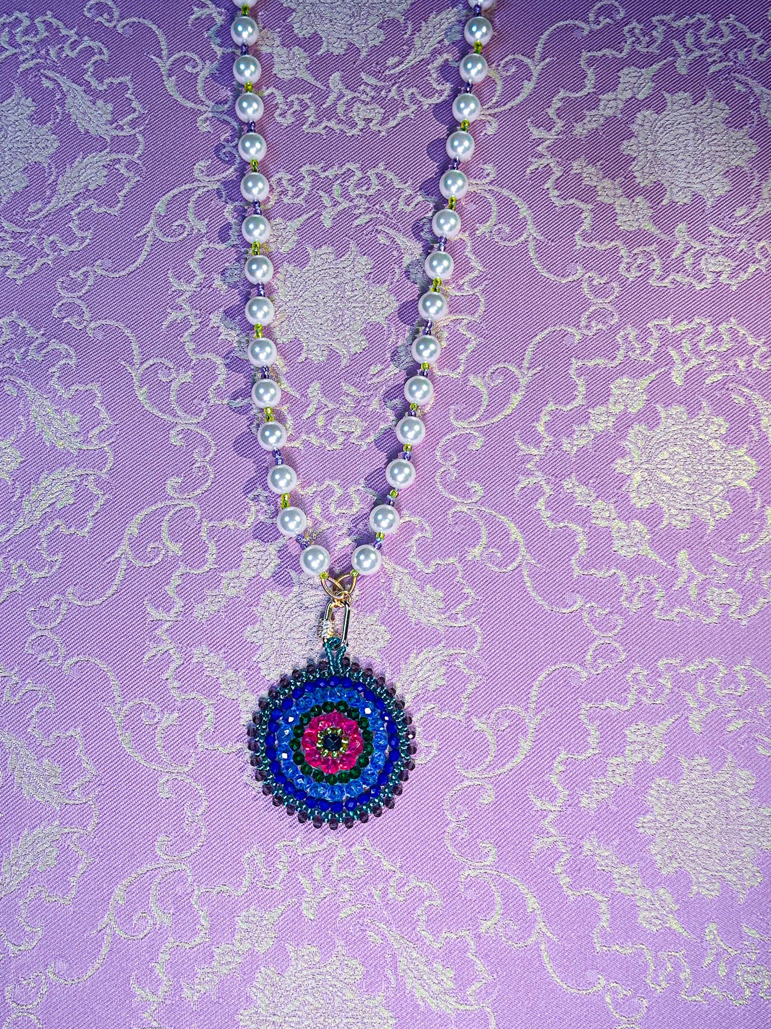 According to our legend, there once was a Chinese princess named Miao Shan, who cherished the Oolong Pearl Necklace and wore it proudly at palace events and ceremonies close to her heart. She would often change her mandala pendants depending on how she was feeling. She used the pearls on her necklace and the crystals on her mandala pendant to shine her light and embrace her true self, daring to stand out and stand up for her beliefs. These necklaces embody the spirit of a confident and bold woman who commands attention and isn't afraid to be herself, making them perfect for any occasion.
