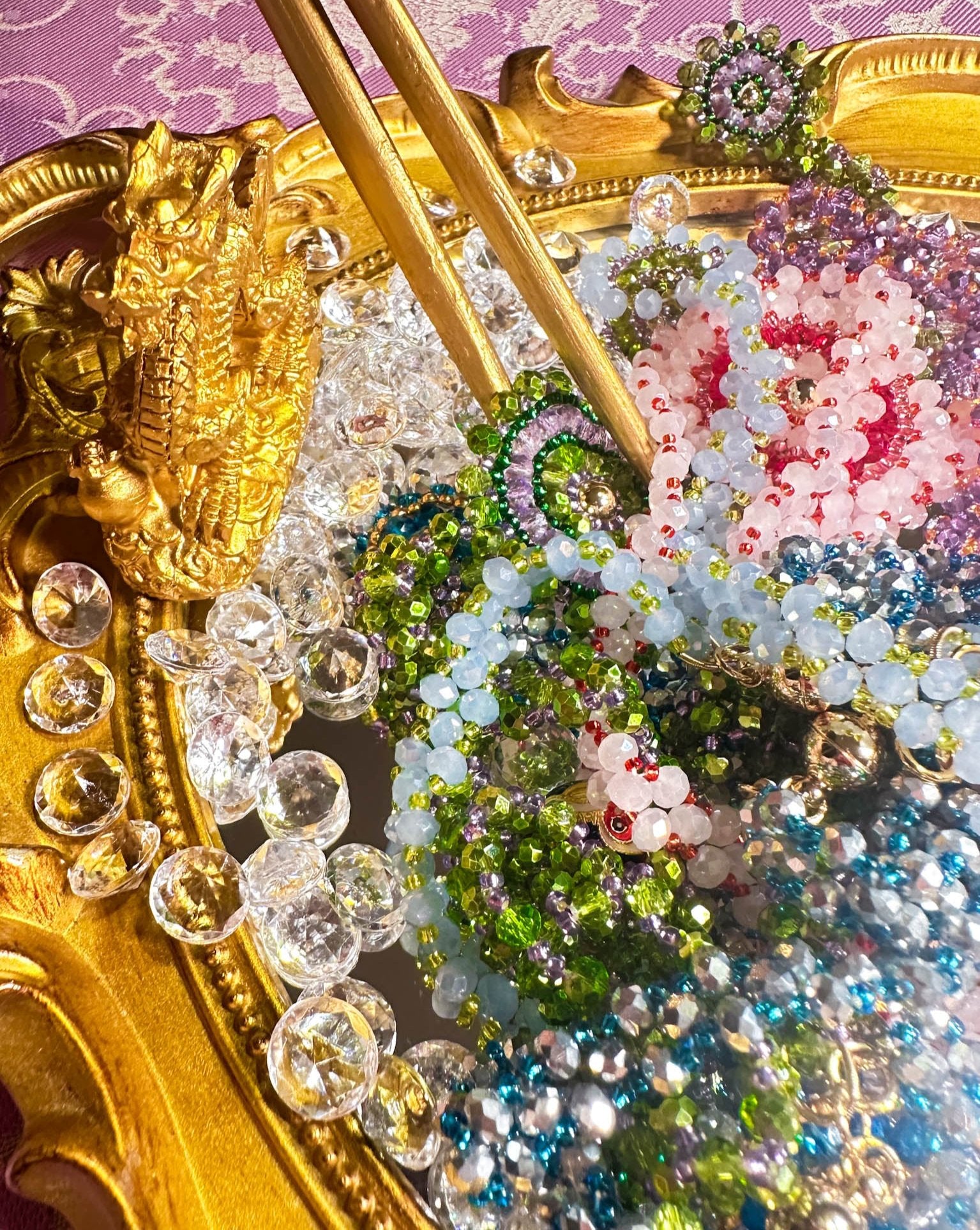 The Lotus Bubble Tea Necklaces are part of our Oolong Tea Time Drop, featuring Kwan Yin, the goddess, in her princess era. This opulent collection boasts gold beads, pearls, shiny crystals, and meaningful colors, exuding loving and healing energies.
